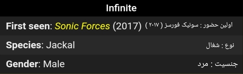 در ایپزود شدو در بازی سونیک فورسز ، شدو به یکی از پایگاه های مخفی اگمن که در Mystic jangle حمله می کند و اگمن به جوخه شغال دستور می دهد تا شدو را از بین ببرند اما شدو همه افراد جوخه شغال به جز اینفینیت را می کشد . اینفینیت بعد از شنیدن خبر کشته شدن جوخه اش و اتفاقاتی که افتاد از اگمن قسم می خورد که شدو را بکشد . شدو ، اینفینیت را نیز شکست می دهد و او را ضعیف و بی ارزش می خواند .