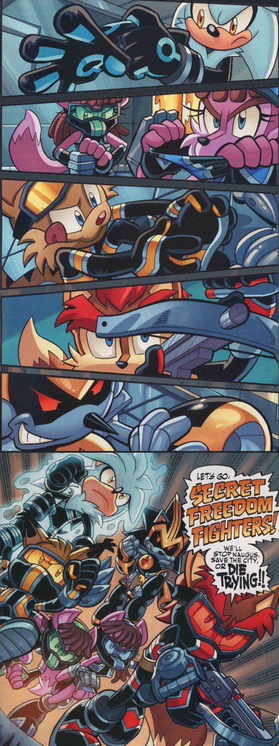 سالی روباتاسایز میشه و سونیک باید اونو برگردونه سیلور در این کار به فریدام فایترز کمک میکنه و همزمان عضو گروه سیکرت فریدام فایترز هم هست اون بعد از جنگ راجب ماموت و دروغاش میفهمه...
